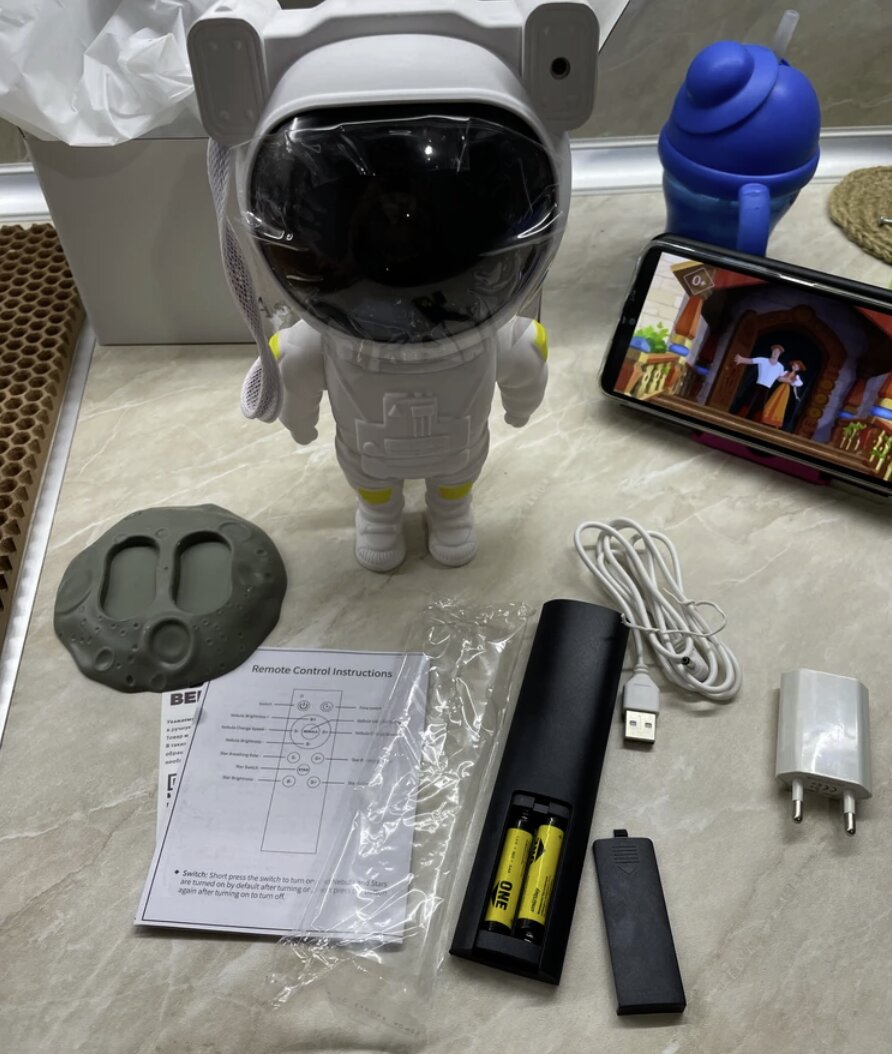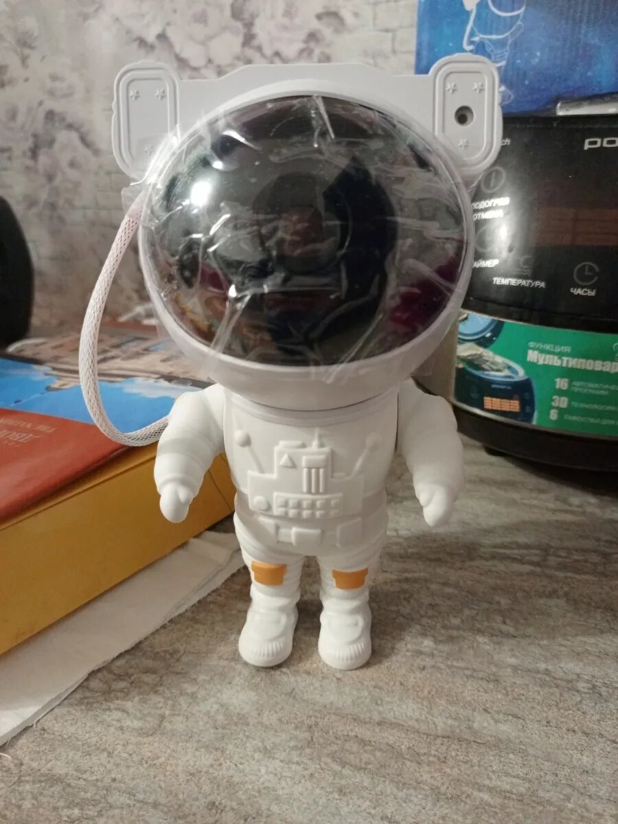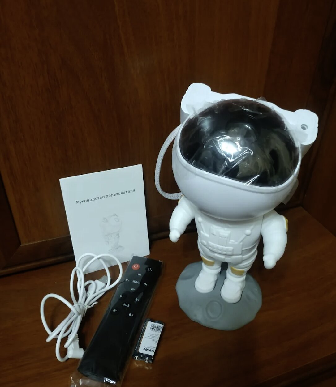 Нічник - це вражаючий інтерьєрний аксесуар, який приносить у ваш простір чарівний космічний настрій. Цей унікальний нічник виготовлений у вигляді милого космонавта і освітлює вашу кімнату неймовірним зірковим небом.