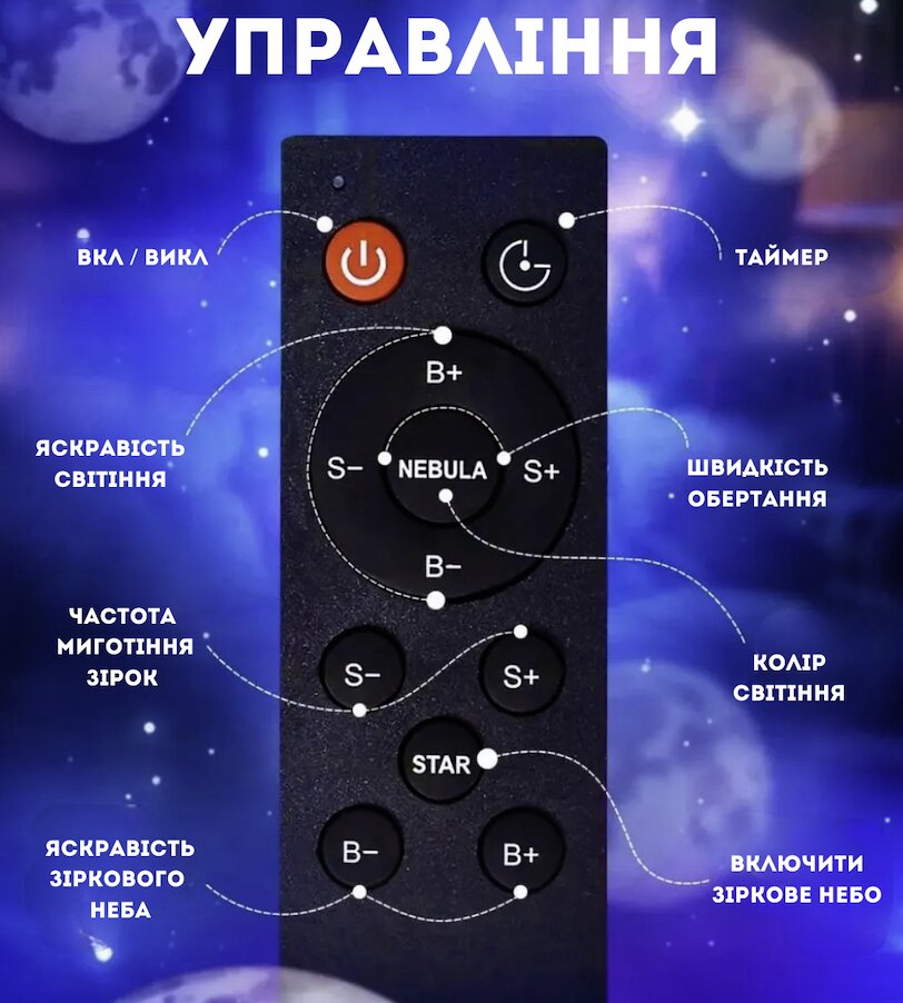Нічник працює від мережі, що робить його ефективним та надійним джерелом світла в будь-який момент. Він не лише освітлює ваш простір, але й стає чудовим декоративним елементом, який привертає увагу та залишає незабутні враження. Завдяки цьому нічнику, кожна ніч може стати захопливою подорожжю у космічні простори прямо зі зручності вашої кімнати.